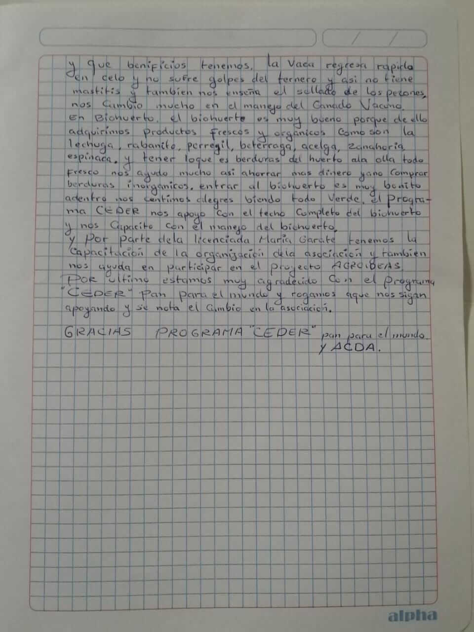 Por último, estamos muy agradecidos con el programa CEDER, Pan para el Mundo, y rogamos que nos sigan apoyando. Notamos el cambio de la asociación.