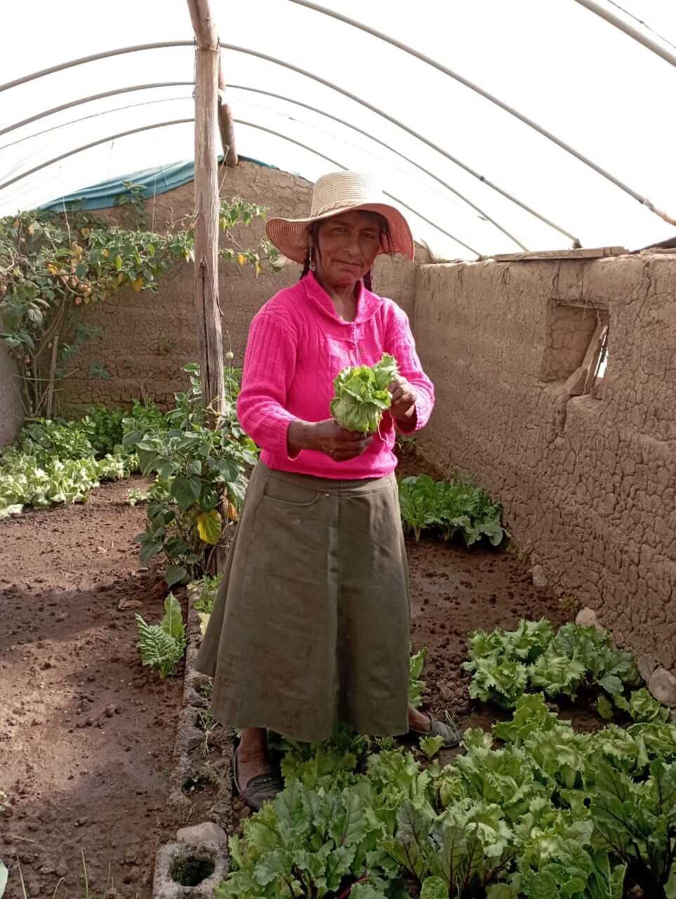 También recibimos biohuertos de CEDER, Pan para el Mundo y ACDA. El biohuerto es muy bueno donde cosechamos hortalizas, zanahorias, lechuga, rabanito, acelga, beterraga y apio, por tanto, tenemos verduras frescas para nuestro consumo. También nos ayuda a ahorrar dinero. Nuestra producción es orgánica. La ONG CEDER también nos apoya con el techo de los biohuertos, nos capacita en organización y asociación con la licenciada María Garate.